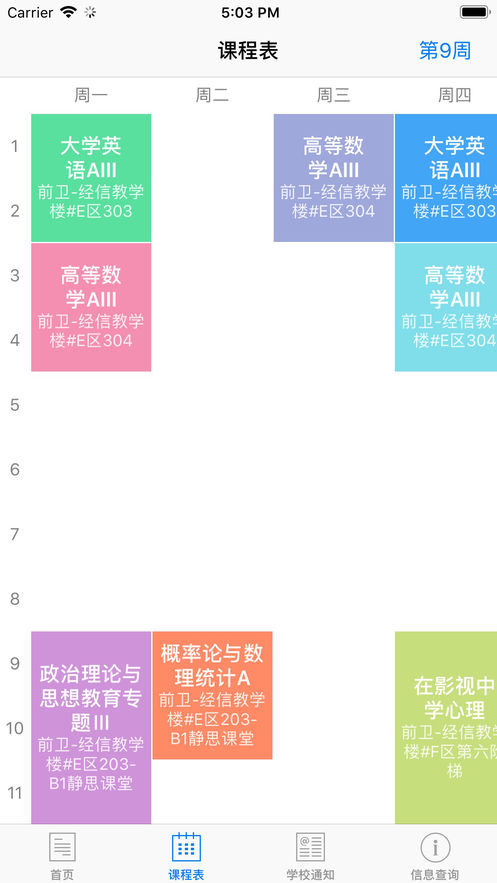 - 查看每周的课程表