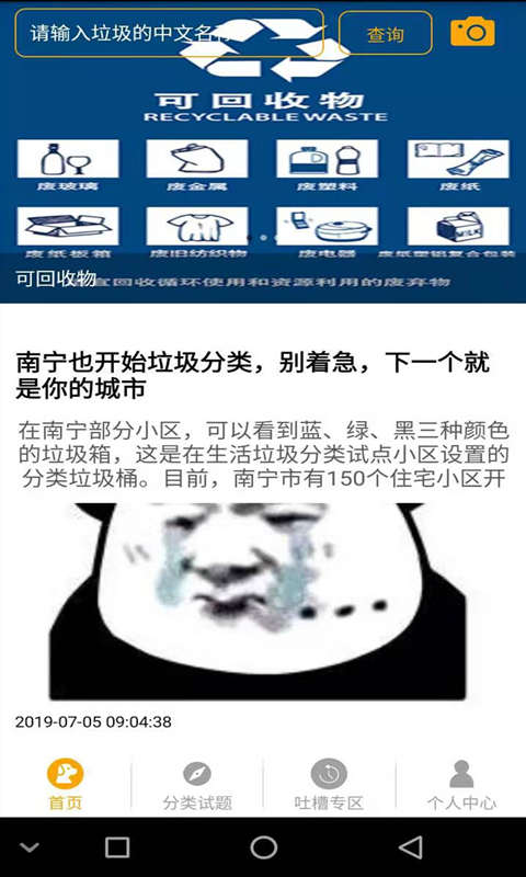最近都在实行垃圾分类制度,乱丢垃圾被发现了是会被罚款的,拍照识垃圾app帮助你识别各种垃圾类型,帮你解决垃圾分类的烦恼!