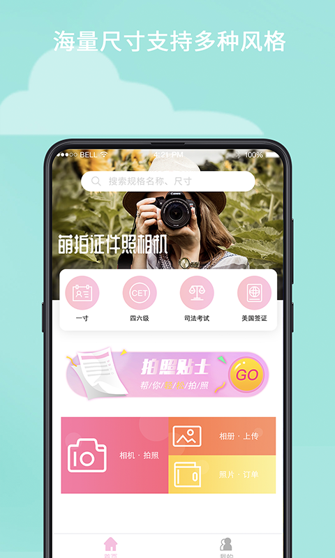 现在很多考试需要考生自行网上填报,上传证件照片时要求有固定的格式大小,您可以用证件照制作APP来自己制作,不用为了满足不同要求天天跑照相馆,而且还能在更短的时间内得到无异于照相馆的专业证件照。
