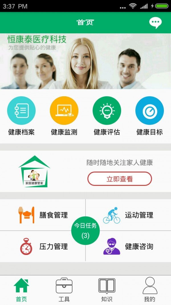 合家健康app是一款健康医疗应用,是恒康泰医疗科技打造的移动家庭健康管家软件。合家健康app汇集膳食处方、监测运动、压力测试和健康咨询等服务,旨在让用户们轻松掌握/了解家人健康。