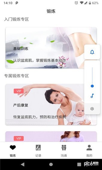 app使用者可以随时随地开启盆底肌锻炼课程,坚持锻炼不仅能否促进产后恢复,还能治疗和预防膨出、脱垂、尿失禁等疾病,增强紧致及性爱愉悦感,维护泌尿和生殖系统健康。