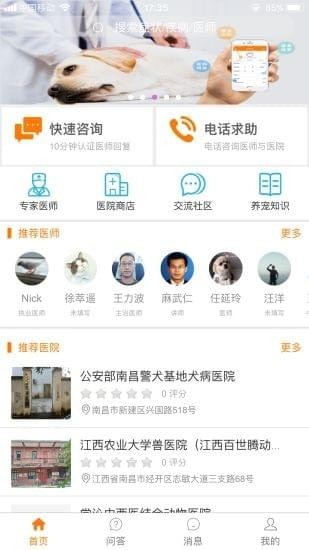 app,5.0版本全新来袭!首页功能更加人性化,附近医师、医院一键直达;新增电话求助功能,助您更清晰表述爱宠问题;