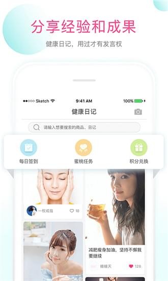 社区帮助年轻人标记健康生活的点滴日记,分享瘦身、美肤心得,用户可以在社区随时随地发布日记,与其他同标签用户一起社交做朋友。