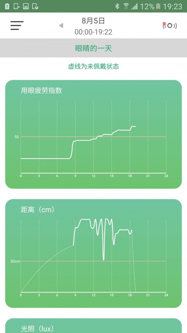 1.实时记录每日用眼疲劳指数、阅读时长、阅读距离、阅读光照和白天户外活动情况。