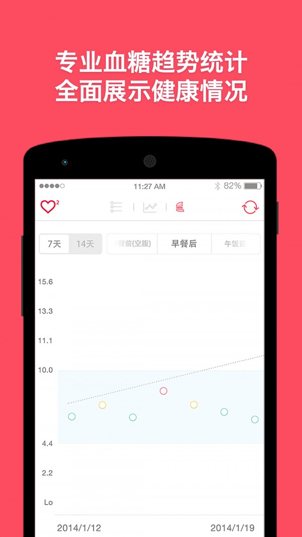 是一款智能的血糖管理移动应用,用户可以使用通过蓝牙与专用的血糖仪链接并同步血糖数据。红倍心专用血糖仪由GE出品,测试精确度全球领先,并率先通过了美国FDA认证,让您精准掌握自己的健康状况。