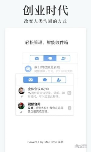 (MailTime 简信) 让电子邮件的沟通变得简单。从此,你不再需要阅读重复繁杂的签名格式等,所有邮件都以简约的气泡式对话呈现,让你一目了然。