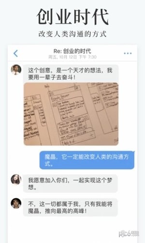 是由电视剧《创业时代》原型团队出品的一款邮件沟通软件,使用魔晶软件,无需添加好友也无需都下载就可以发送邮件,非常方便,让发邮件好像发短信一样简单。