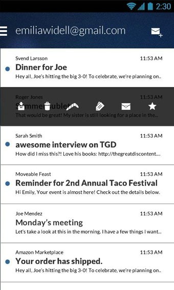 在Gmail上广受欢迎的插件Boomerang发布了它的Android版本,Boomerang 延续了其 web 版本对 Gmail 核心功能的支持,Gmail 中的各种星标、标签、文件夹等等,都无缝的集成到 Android 版。
