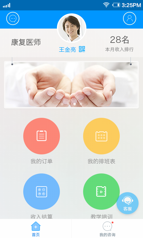 如果你是康复师,通过APP为用户提供上门康复服务,每月增加收入1-3万。用户历史订单和代服务订单查询,自由选择时间开放上门服务,可查询上月收入、累计收入、收入明细记录,还可通过教学培训康复视频自学。