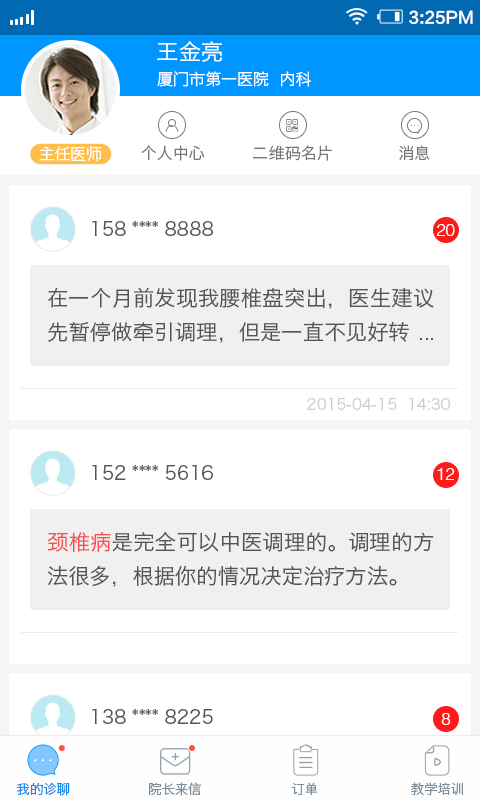如果你是医生,病患可通过图文、语音、视频方式在线问诊并发送之前病例档案记录便于病情诊断。病患预约订单实时更新,就诊记录病例便捷管理。用户通过二维码扫描关注医生,建立个人知名度。