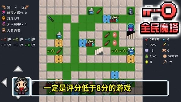 是一款魔塔题材的RPG游戏,游戏采用复古像素风格。在中,如果你是骨灰级玩家的话,你将见到许多你熟悉的东西,譬如人物,譬如道具,但这的确是一款全新的游戏,一切都显得新奇无比,如果感兴趣的话,不妨来试试看。