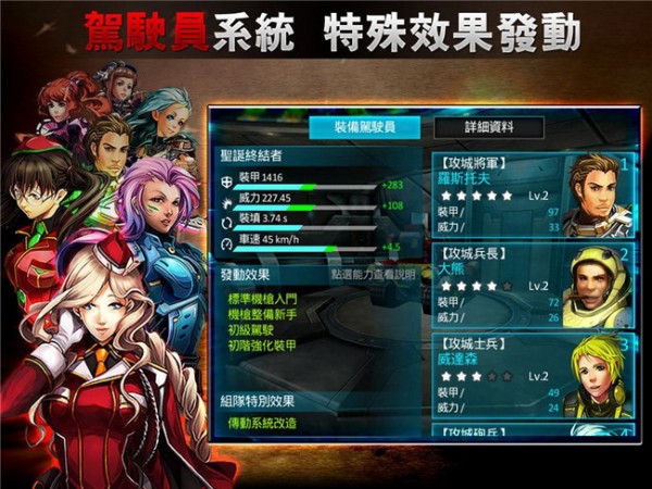 .多位驾驶、多种能力:搭配出不同驾驶员组合来发动各种特殊效果。