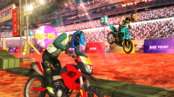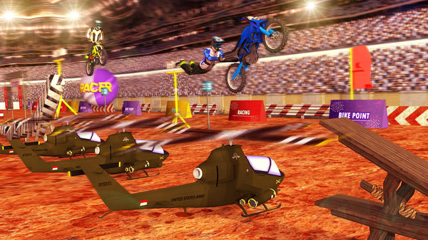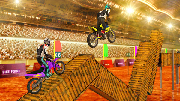摩托特技翻转是一款非常有趣的休闲竞速游戏。玩家需要驾驶一辆摩托在一个场地表演特技。你是一个经验丰富,技术高超的特技驾驶员,所以你需要做的就是不断在场上练习特技。游戏采用3D画风,建模细致,让人爱不释手