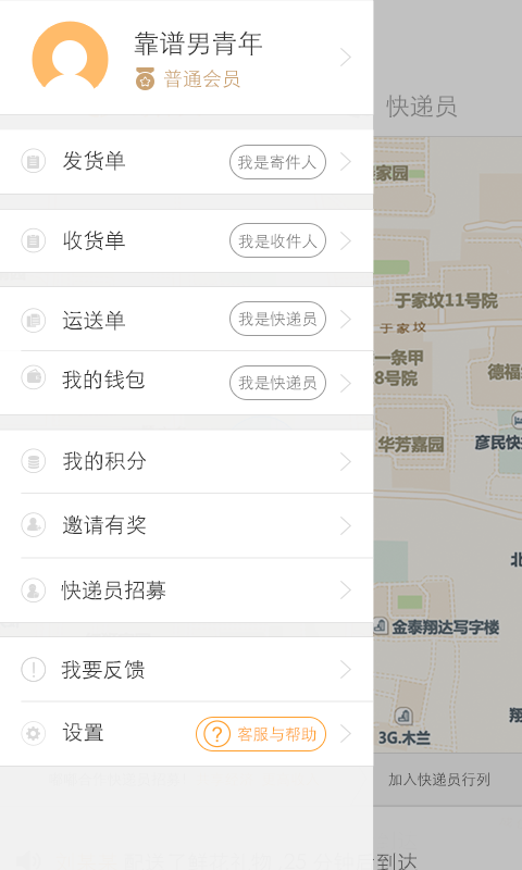 11、多重身份任你选:寄件人、收件人、自由快递员,多重身份任你选。根据自己的行程,自主选择身边的订单,及时取货,随程捎带。