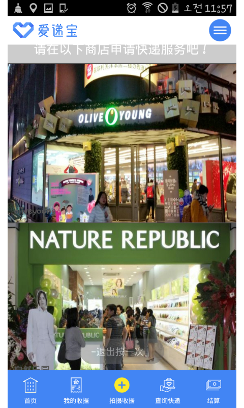 爱递宝在为访问韩国的中国游客提供当天购物行李快递服务。