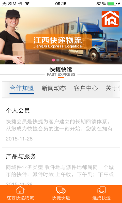 江西快递物流是江西萍乡市快捷快递打造的快递物流查询APP平台,可以通过此平台了解快递物流行业信息,合作加盟,物流进度查询。另其为市场提供全新高端定制化配送服务,整合了物流、零担、快递的运营模式;以快递的时效做物流的产品,满足不同客户的不同的物流配送需求,优质的服务为客户创造了更多的价值。