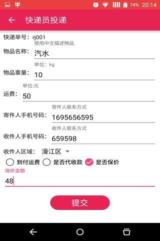 2. 快递员新增快递,投递中转功能