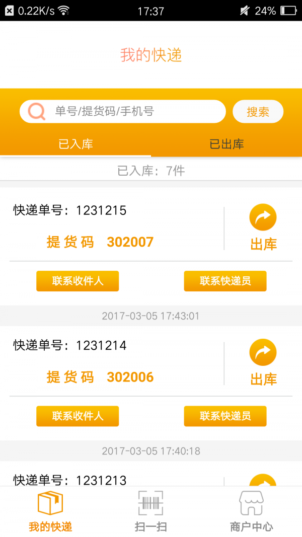1、便捷扫码出入库,查看接收包裹数量及状态