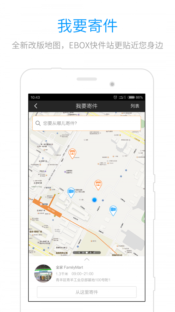 查找附近易泊服务点,手机下单,远程寄件,从此再也不用等待快递员;
