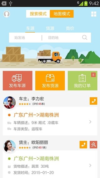 返程车自动推送!司机、货主多维度全自动匹配!全免费!握物流-专业物流平台。物流人的得拥有。 特色功能: 【露天车场,任你挑选】 握物流平台有数百万台车源(专线、零担、化工、生鲜、服装、蔬菜、矿产、配件设备、大件运输、城市配送等),线路遍布全国,廉价返程车。 【一手货源,公平竞价】 平台联盟发货企业,组织一手货源,和园区、配货站结盟,铺开全国的货源地图,诚信认证的车源可对货源公平竞价,货美车廉。 【智能匹配,自动推送】 在平台上发布的车源、货源,平台自动完成匹配,找到符合要求的客户,自动推送到APP和短信,你只需一键确认。 【全程定位,节点跟踪】 提供全程运输定位跟踪服务,方便的订单管理让你意想不到。 【在线交易,订单管理】平台可完成车货匹配,调度运营分析报表我们都为你量身定制。 【永远免费,贴心服务】目前所有其他发货软件,基本都要收费,握物流平台永久免费。