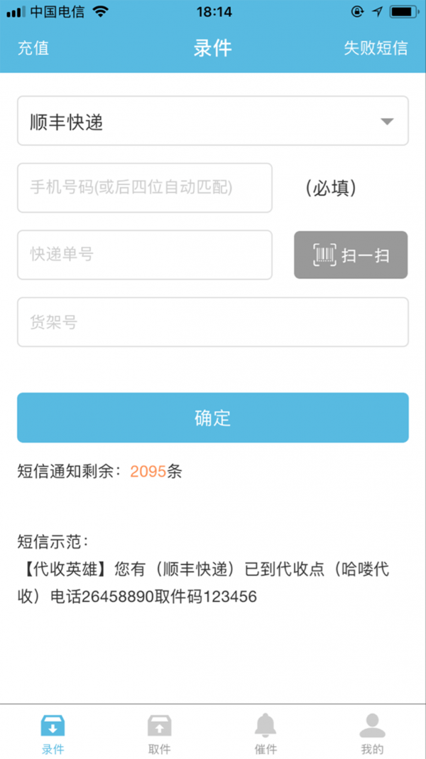 代收英雄app是一款集快递代收入库、出库、催件、查询于一身的功能性APP。主要面向超市,学校等快递代收点,为其提供快速录件,扫码识件,便捷出件,及时催件等功能支持,简化传统工作方式,节省人力成本,提高工作效率。