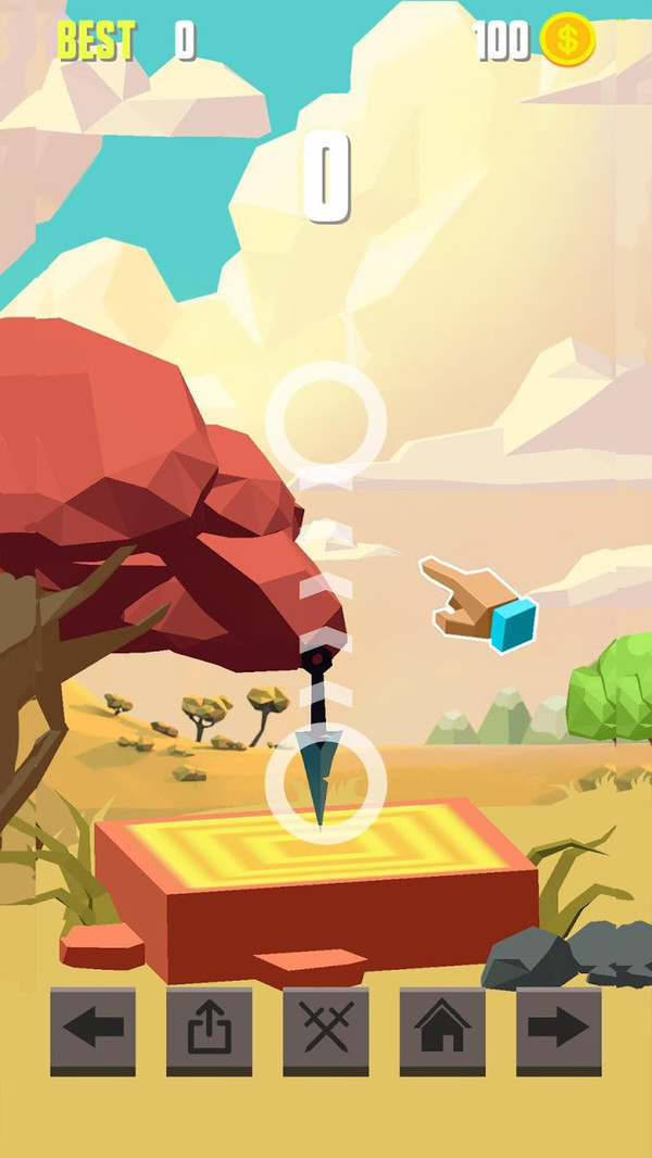 2、人们必须灵便的操纵小飞刀的运功,进而能够让它中间靶心,得取满分,进而能得到大量的硬币。