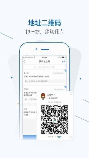 - 地址薄保存的地址可以转化为二维码 ,扫一扫即可轻松寄件。