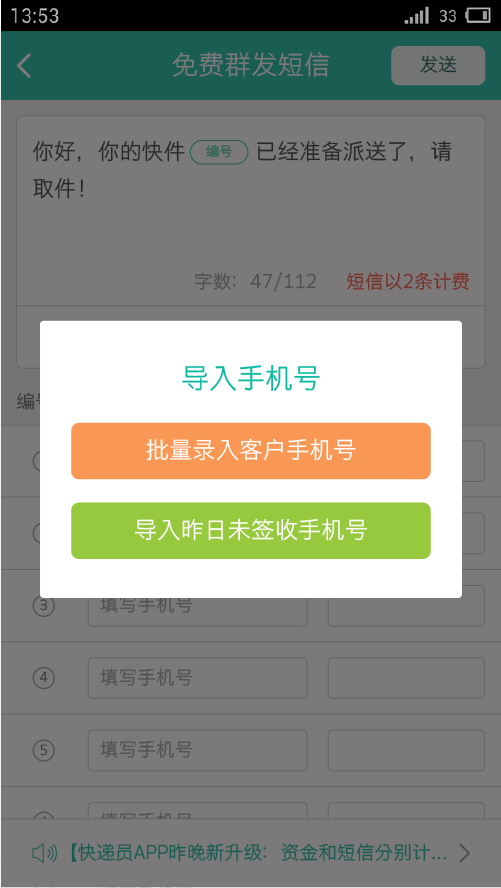 一键群发派件、问题件通知短信,收发状态一目了然!提升派件效率!