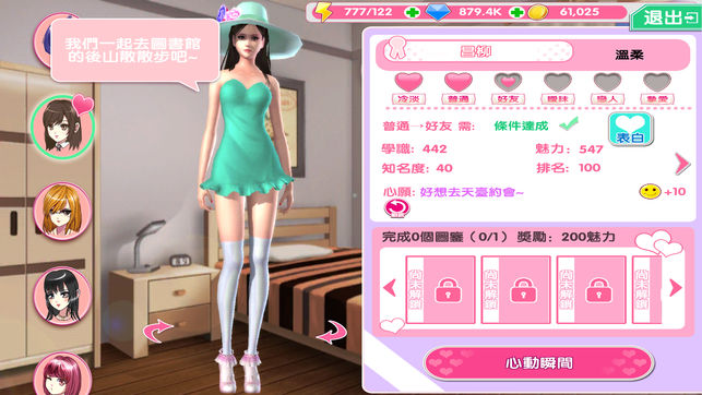 4、剧情随心展开,聊聊天谈谈心,选择不同的约会地点,送礼提升好感度。教你如何追妹子。