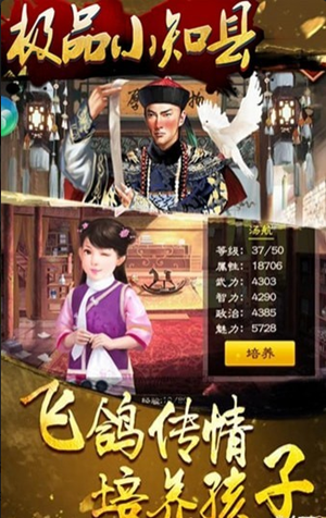 极品小知县是一款原创经营养成官斗手游,以角色当官为背景所展开的一系列故事,游戏中玩家将穿越到古代展开游戏,不断的在古代官场展开游戏。游戏以当官第一视觉生动呈现,娶妻纳妾、生孩养娃、家族结盟、联盟争霸、培养门客、玩家PK 、多人社交等精彩玩法。