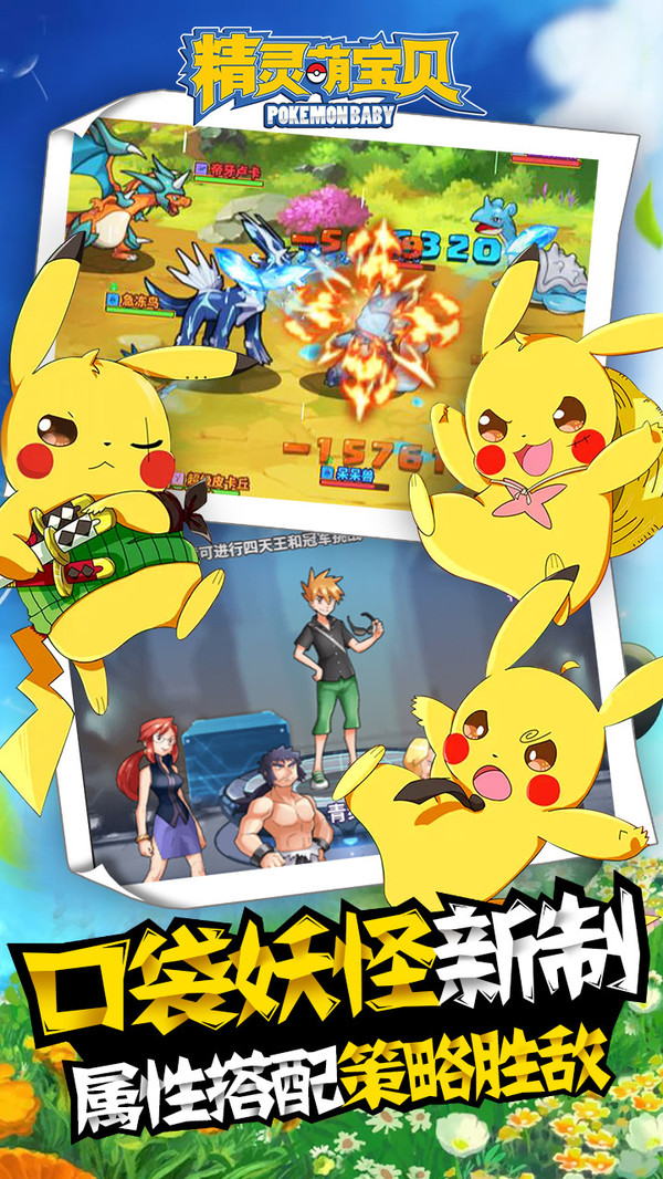 精灵萌宝贝口袋皮卡丘是一款集养成、收集、对战于一体的口袋妖怪养成游戏,游戏采用卡通风格绘画,玩家要在游戏中收集各式精灵,展开对战,养成自己心爱的小精灵,打败各个道馆,收集徽章,童年的回忆啊!快来下载吧!