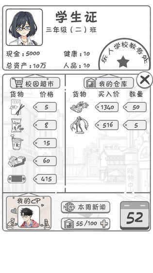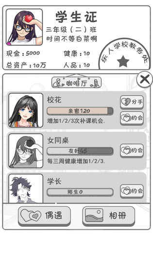 零花钱大作战ol是一款非常有意思的模拟经营类游戏,在你拥有一个机会在学校进行事业,还可以同时和女神约会哟!非常自由的玩法,快来试试吧~