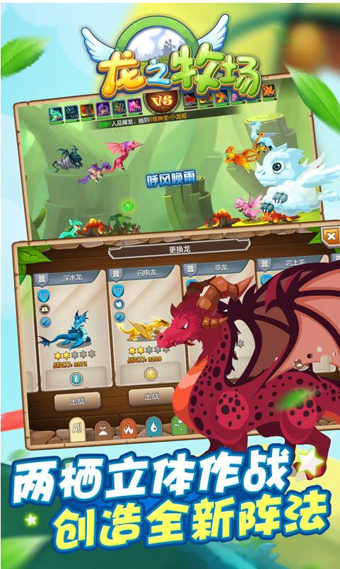 2、游戏中拥有不同属性的地面以及天空等各种巨龙,您可以培育它们并且孵化出全新的巨龙!
