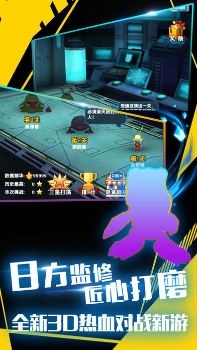 《数码冒险ios版》是一款2D横版的卡牌手游,游戏有着强烈的经典漫画风。经典漫画擅长与原著角色形象一致叫经典漫画风,所以在游戏中看到的角色怪物都是以前在动画片里看到的哦。本作在游戏游戏在UI设计上也是使用了前后远近的布局,让游戏中的建筑显得错落分明,非常的有层次感。