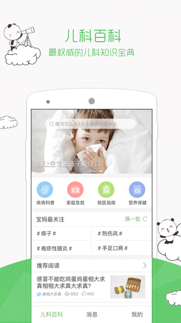 熊猫儿科是权威的儿童健康服务应用,联合知名儿科专家,为宝爸宝妈们提供专业权威的儿科疾病、急救护理、营养保健知识和专业的医疗服务。
