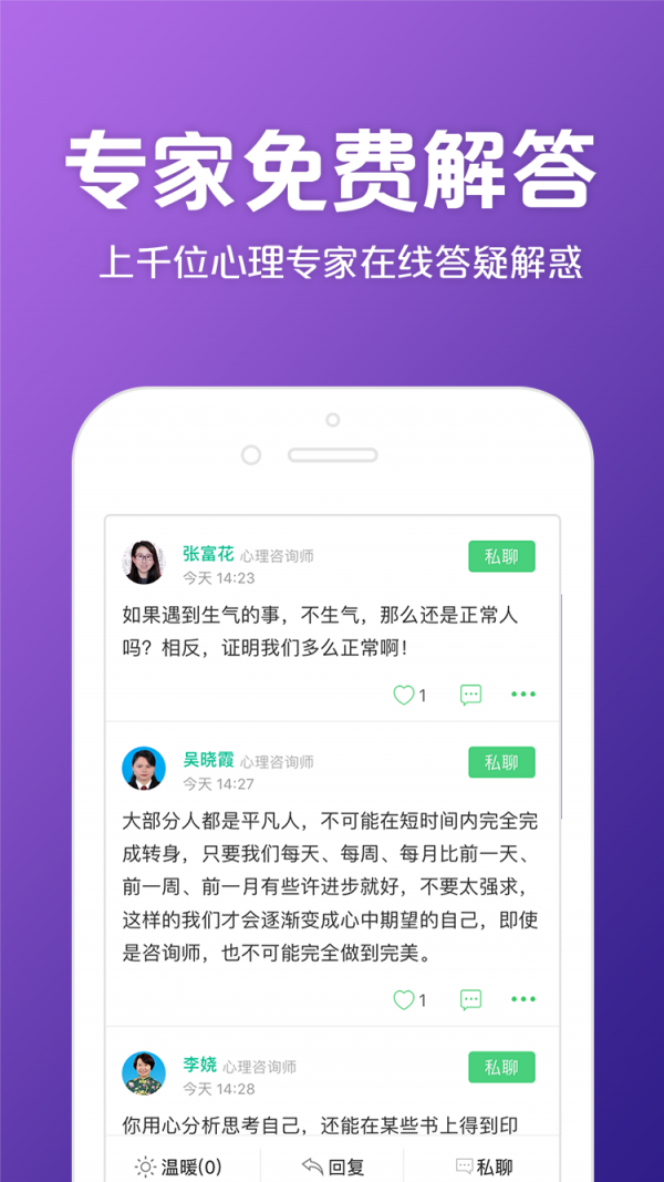 同时,汇集情感专家、心理咨询专家、亲子教育专家提供在线 心理服务平台,帮您解决各类烦恼。