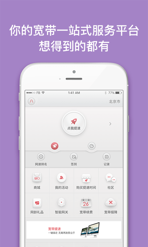 app旨在为您带来更高速流畅的网络体验,同时提供更方便快捷的宽带服务!