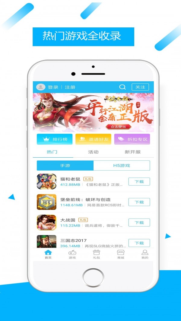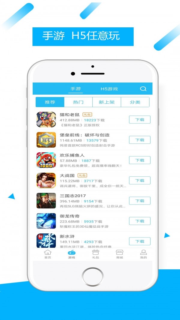 app是一款非常不错的手机游戏娱乐平台,app中游戏种类广泛,均是在当下年轻人群中火爆风靡的热门游戏,只需一次点击,下载完成自动安装游戏,赶快来下载吧!