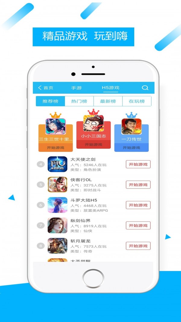 随时随地,一起游戏!是为广大游戏玩家提供安全丰富游戏下载的辅助工具,集手游、H5于一体,即点即玩,助您畅享游戏之旅!万千资源,应有尽有,除了你想要的还有你想不到的!