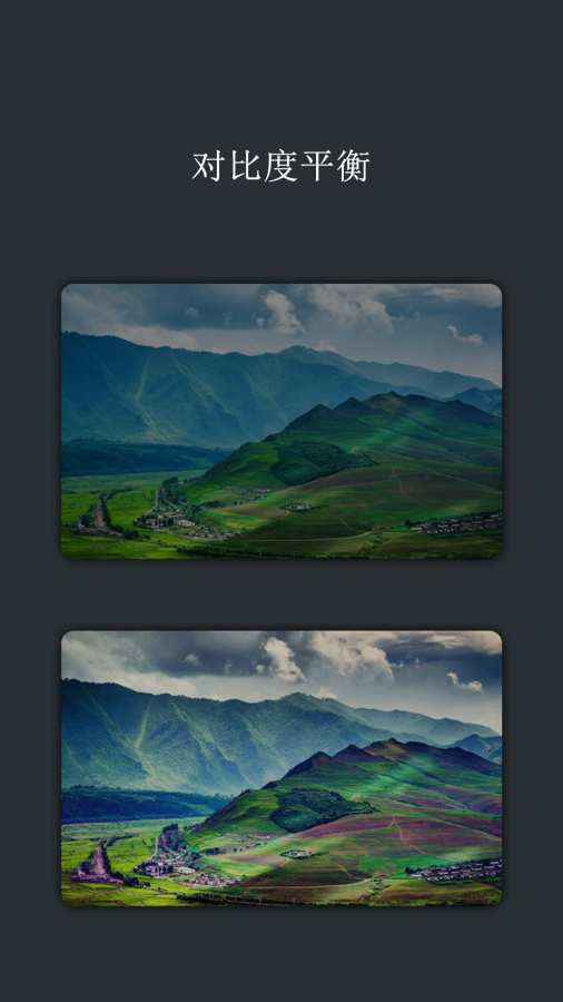 对比度平衡:通过AI算法自动调整图片最佳对比度。当图片对比度过暗会自动调亮,当过亮则自动调暗