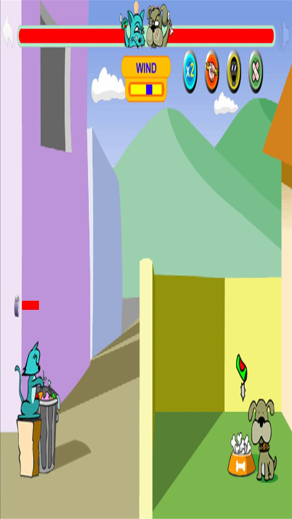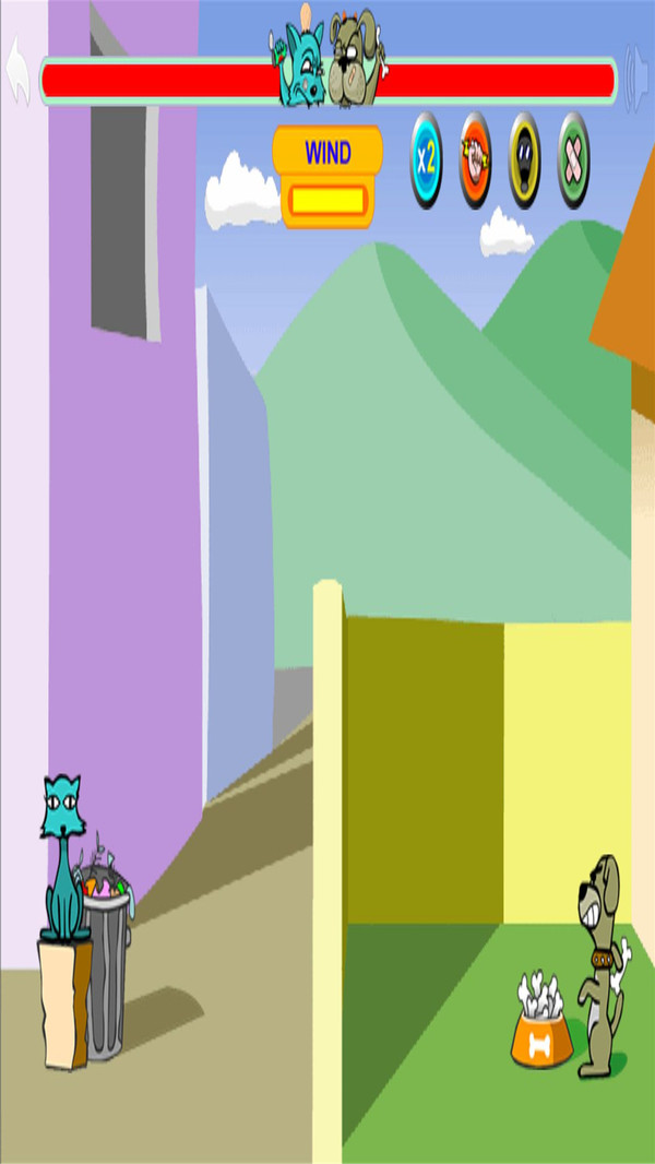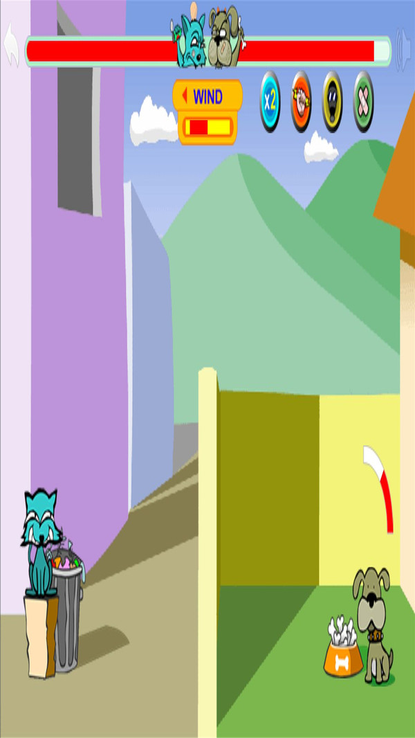 狗猫战斗是一款卡通风格的投掷对战游戏。玩家在游戏中可以选择小猫或小狗的角色开启对战,越过围墙进行精准投掷,考验玩家对力度和角度的掌控,精准投掷,完成命中,帮助一方获得比赛胜利。