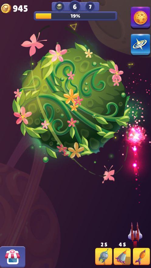 1、趣味飞行射击,宇宙背景攻击行星。