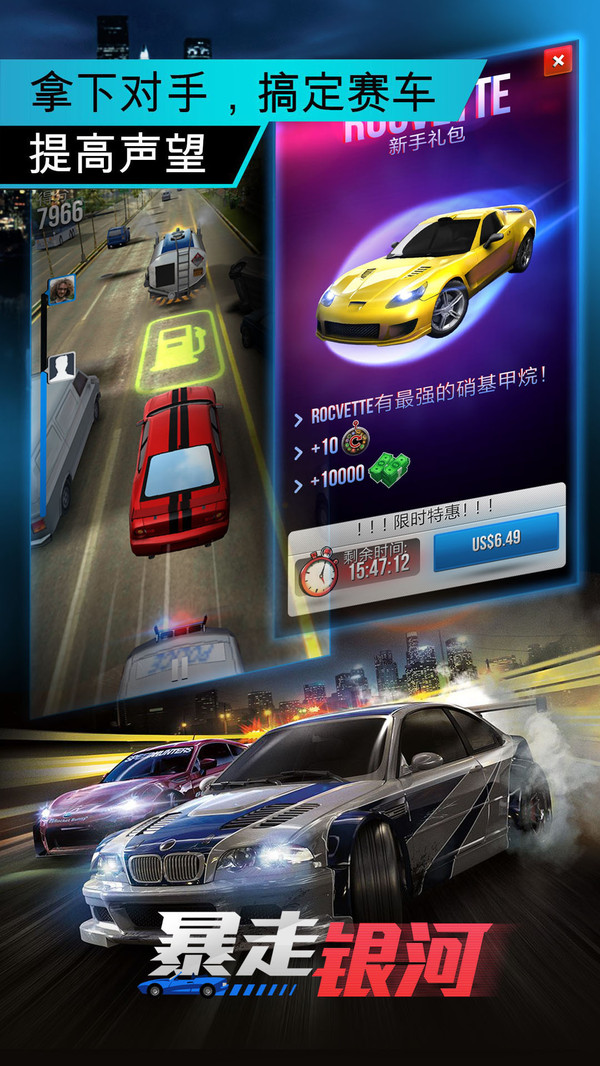 暴走银河是一款汽车驾驶型跑酷游戏。游戏中你需要驾驶酷炫的跑车在道路上疾驰,没有人可以阻挡你,因为你可以从他们边上闪过去。游戏画面精美,游戏过程中提供丰富的道具是竞速过程更具趣味,比如吃到加速道具将进入特殊视角的加速过程,玩家将一路飞驰,迅速完成部分路程。