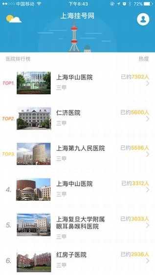 上海挂号网,是为了方便上海就医的患者,推出的挂号陪诊服务预约APP。基于上海本地三甲医院:华山医院、仁济医院、上海中山医院、上海九院等的历史预约数据,通过大数据技术,推出上海地区三甲医院热度排行榜。您可以根据医院排行热度,选择预约指定医院的挂号陪诊服务。