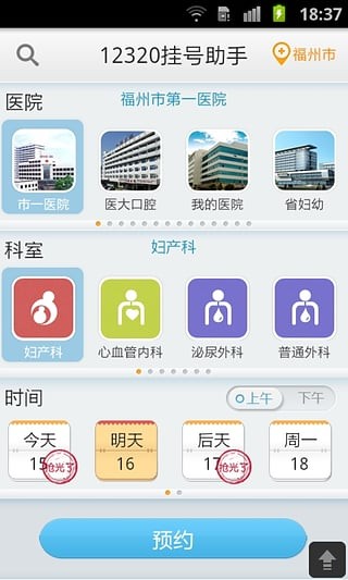 12320挂号助手app是一个专为福建全省市民量身定制的免费预约挂号移动端应用,12320挂号助手app汇聚了省内370家二三甲医院,1508家社区医院预约挂号资源,医院、科室、医生及排班情况一目了然。