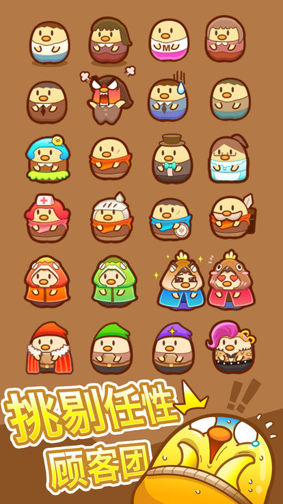 鸡来了游戏是一款趣味的养成手游,玩法轻松简单有趣,各种特色的小鸡可以解锁,操作简单易上手,游戏画面精致高清,玩家将在游戏中经营自己的甜品店,各式各样的挑剔的顾客团,满足这些顾客的口味,才有机会获得更多食客的认可,并以此来发展店铺的规模,喜欢的快来下载吧!