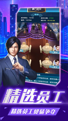 魔都首富是一款以经营养成为核心玩法的模拟经营游戏,玩家将以总裁的身份出现,精选属于你的员工,豪车别墅应有尽有,更有美女佳人相伴,快来享受这不一样的人生吧,你还在等什么!