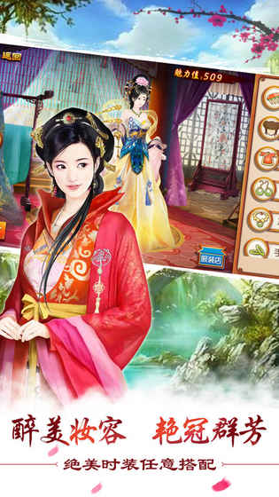 特色DIY装扮,华美的后宫,绝色的佳人亲手装扮。游戏内各种古风唯美的服饰可供选择。