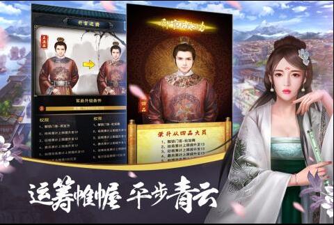 后宫妃子可通过寻访和活动获得。纳入后宫的妃子,就可以翻牌子随机宠幸和赏赐珍宝,提升与妃子的亲密度。每个妃子均有对应的势力名臣,消耗妃子势力点可提升对应名臣的属性,同时国力也会上涨。