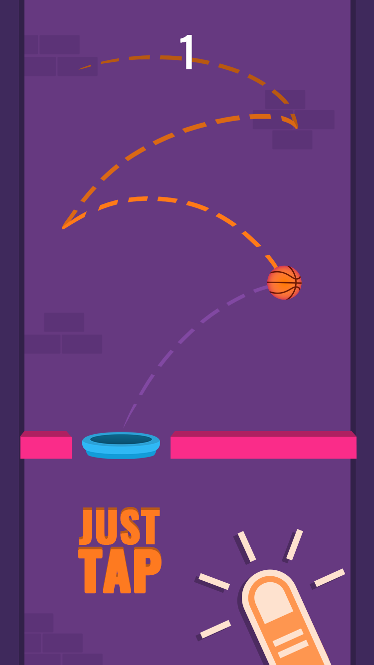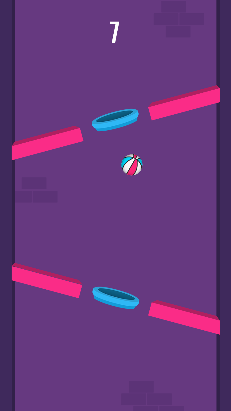 在游戏中点击篮球来进行弹射,让篮球成功的穿过障碍,点击不同的部位会从不同的角度来弹起,巧妙的利用规则。